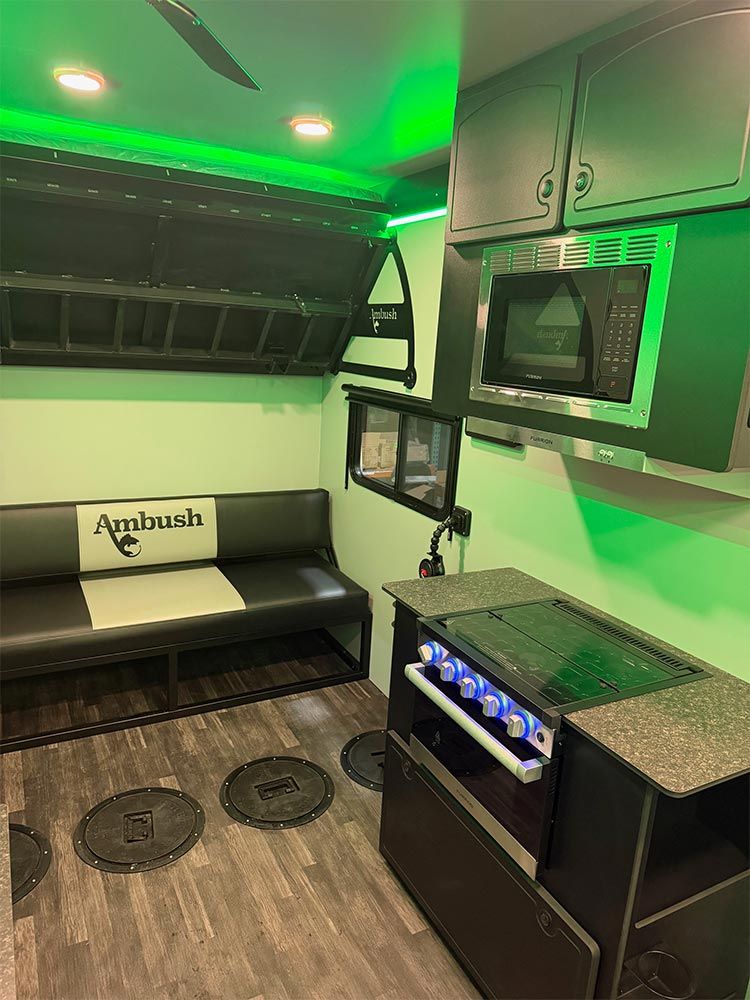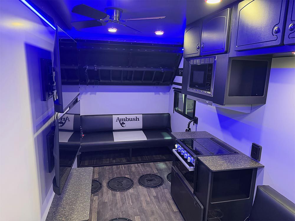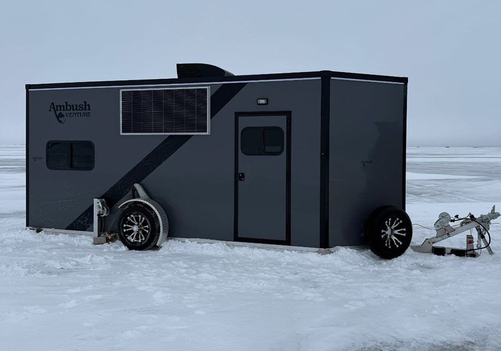 The Ambush Venture 165 ice fishing wheel house offers even more space while maintaining the same high-quality construction. Built entirely from SIP (Structural Insulated Panels), it features seamless, one-piece sidewalls for unmatched strength and insulation. Like all other Ambush products, the Venture 165 is build Fishing First, delivering you the ultimate ice fishing experience. The Venture 165 is packed with features so you can have the ice house of your dreams.